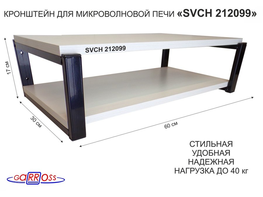 В корзину Купить в 1 клик Кронштейн для микроволновки, 17см черный "SVCH 212099" под микроволновую печь,полки 60х30, сосна