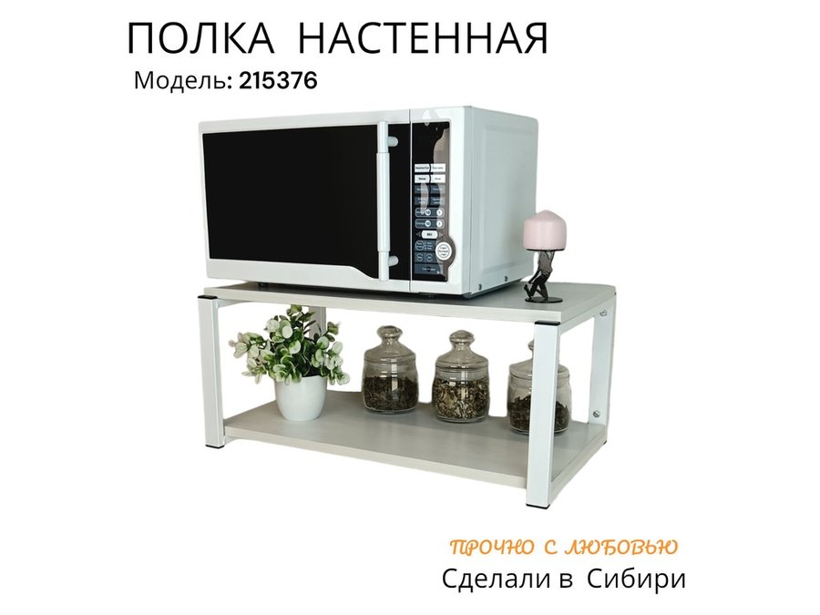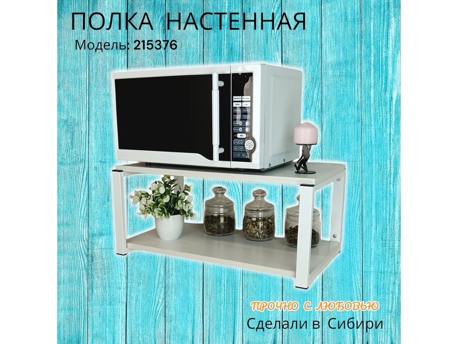 Полка для микроволновки "SVCH 215376" высота 27см, размер полки 60х30см, белая, сосна выбеленная