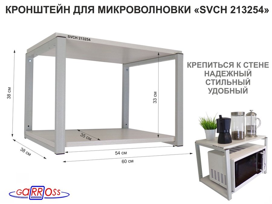 Полки для микроволновок "SVCH" кронштейны для СВЧ печей, высота 15см, 60х30см, 1 уровень