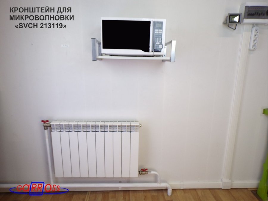 В корзину Купить в 1 клик Кронштейн для микроволновой печи, серебристый "SVCH 213119" высота 15 см, полка 60х30 см,сосна выбел