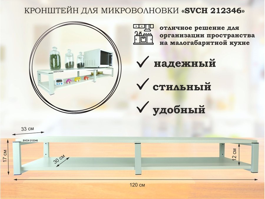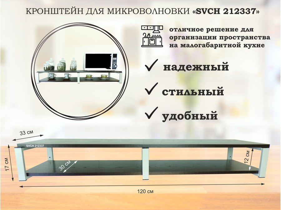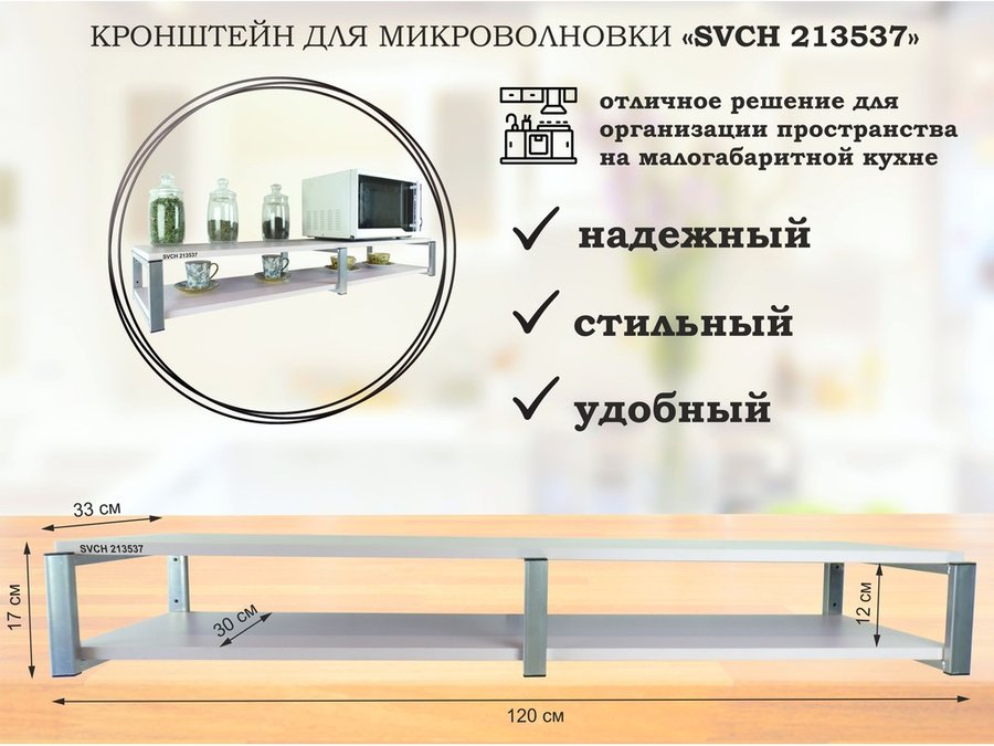 Полки для микроволновок "SVCH" кронштейны для СВЧ печей, высота 17см, 120х30см, 2 уровня