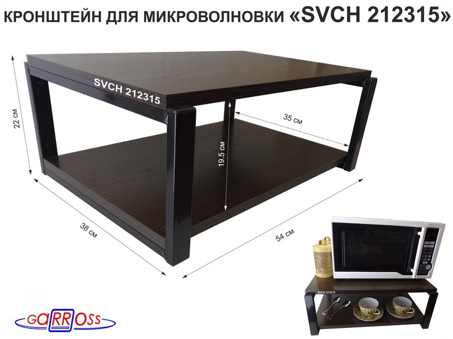 В корзину Купить в 1 клик Кронштейн для микроволновки, 21см серый "SVCH 212318" две полки 35х54см, венге