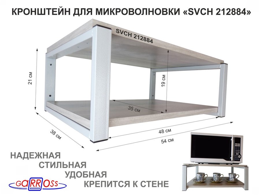 Полки для микроволновок "SVCH" кронштейны для СВЧ печей, высота 21см, 54х35см, 2 уровня
