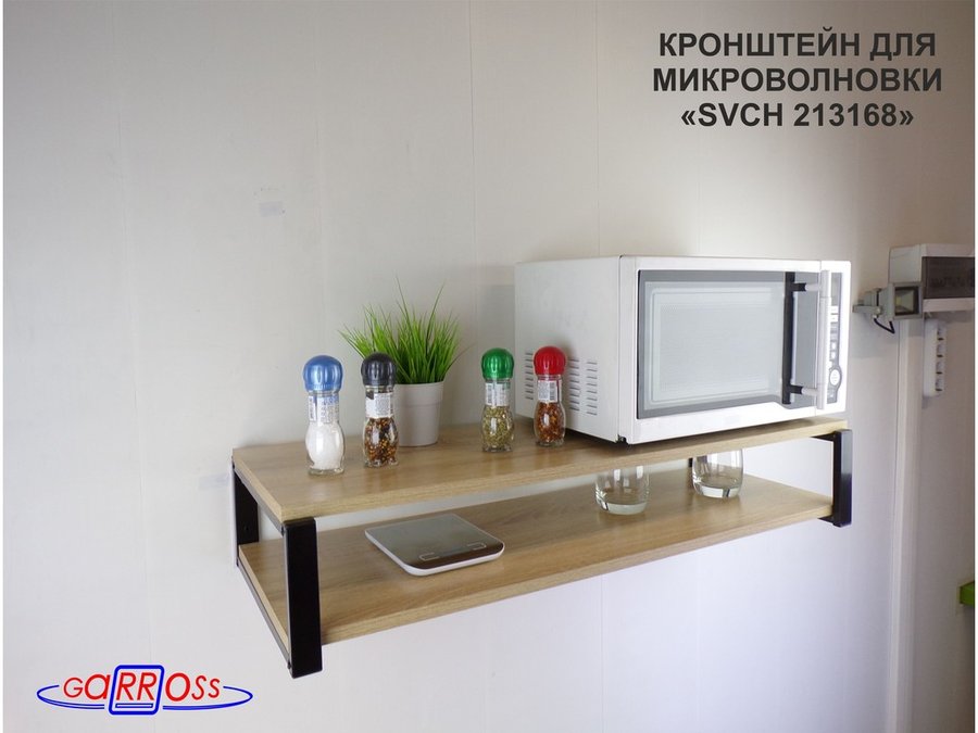 Кронштейн для микроволновки, 17см чёрный "SVCH 213168" под микроволновку,две полки 90х30, дуб сонома