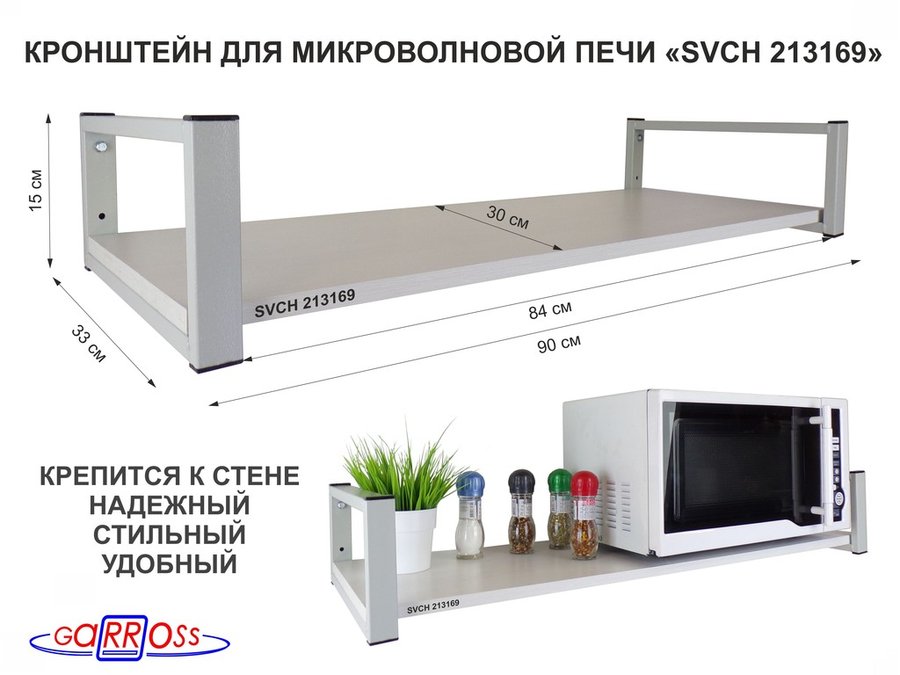 Полки для микроволновок "SVCH" кронштейны для СВЧ печей, высота 15см, 90х30см, 1 уровень