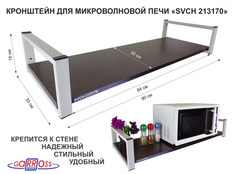 В корзину Купить в 1 клик Кронштейн для микроволновой печи, 15см серый "SVCH 213170" полка 90х30, венге