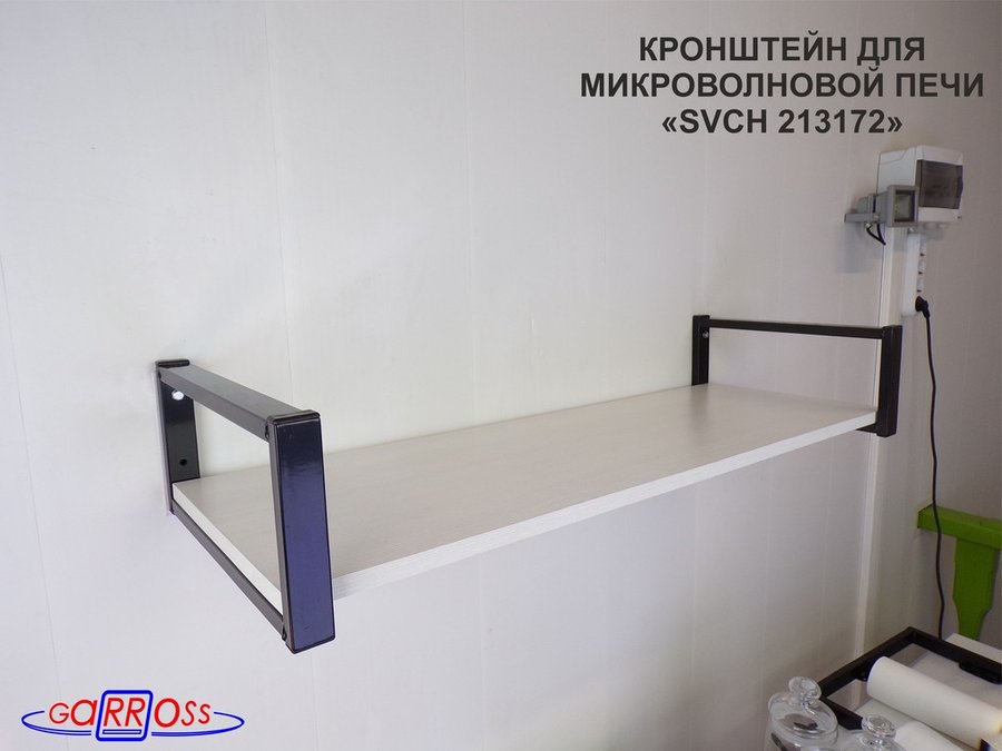 Кронштейн для микроволновой печи, 15см чёрный "SVCH 213172" полка 90х30, сосна выбеленная
