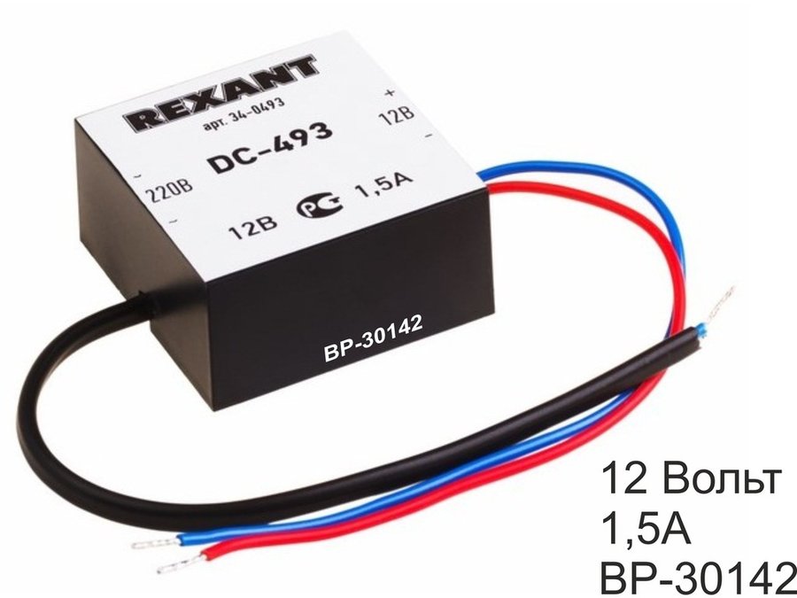 В корзину Купить в 1 клик Блок питания 12 Вольт 1500мА "BP-30142" стабилизированный 12В, 1,5А, уличная установка DC-493