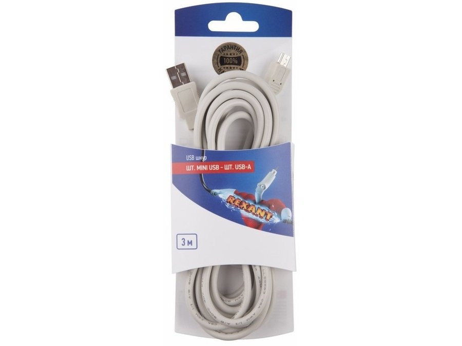 В корзину Купить в 1 клик Шнур шт. mini USB - шт. USB-A 3M REXANT