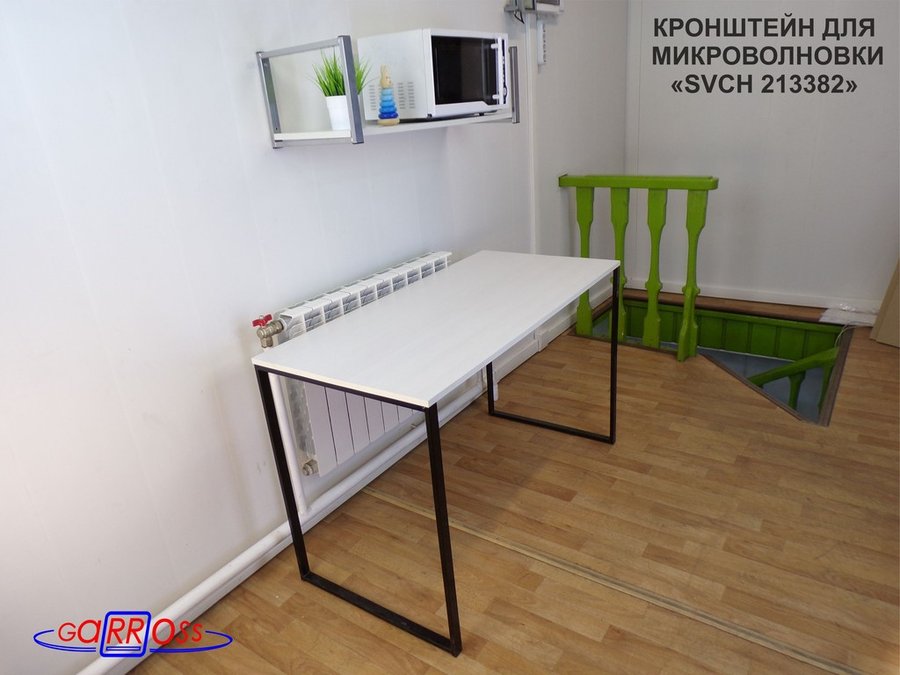 • Полка надежно крепится к стене при помощи анкеров или шурупов с дюбелями, на ней можно разместить микроволновую печь, кухонную технику, посуду, специи и многое другое