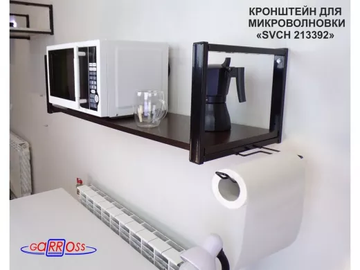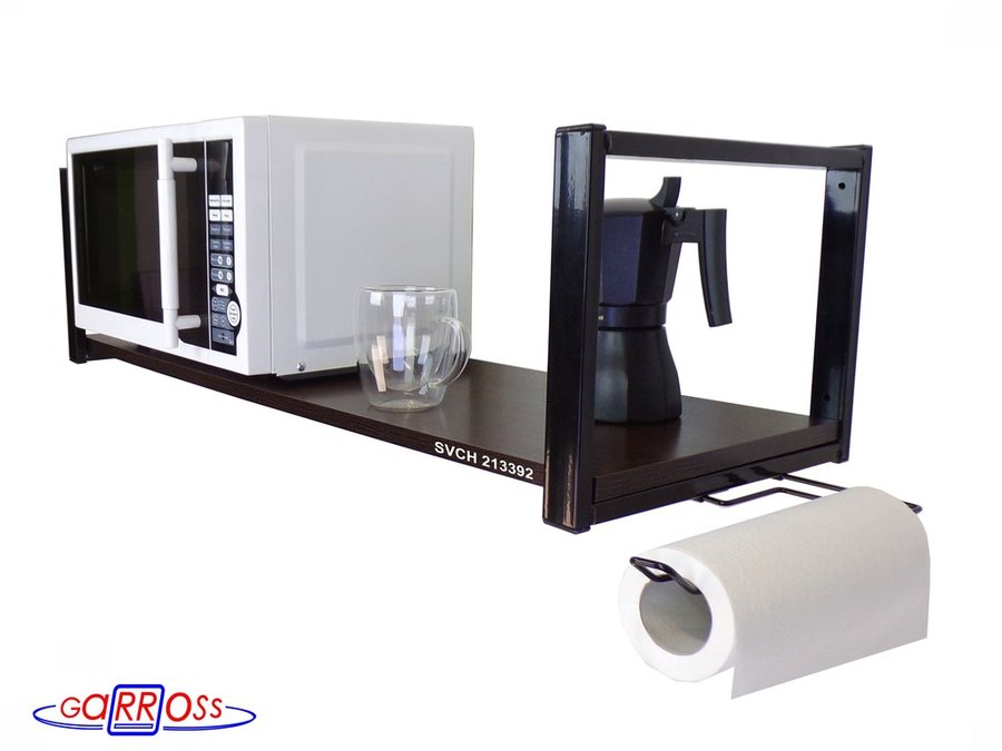 Кронштейн для СВЧ, 25см черный,90х30см, держатель полотенец правая сторона"ПолкаКрепка-213392" венге