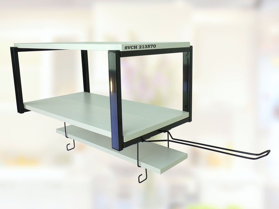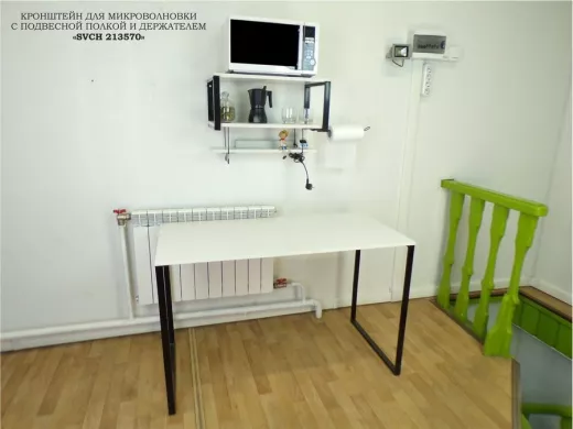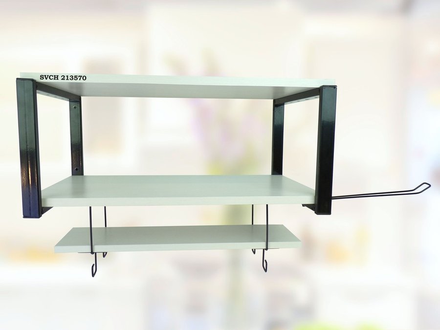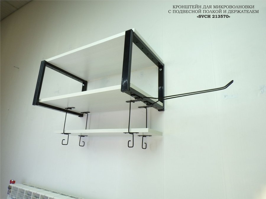 В корзину Купить в 1 клик Полка для микроволновки с подвесной полкой, 27см, черный "SVCH 213570" 60х30см, сосна, держатель