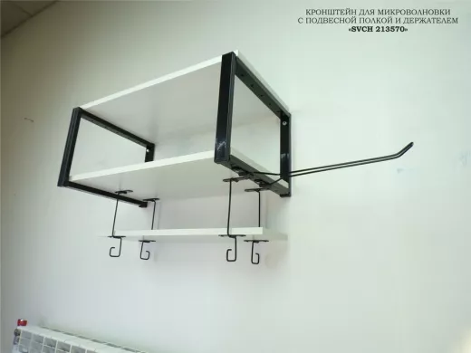 Полка для микроволновки с подвесной полкой, 27см, черный "SVCH 213570" 60х30см, сосна, держатель