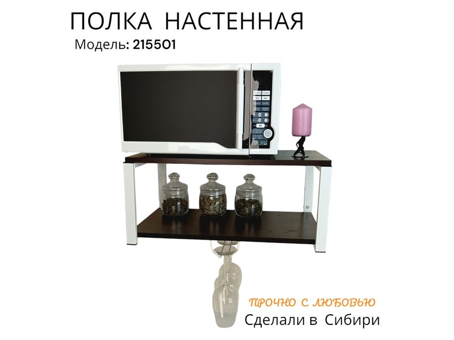 В корзину Купить в 1 клик Полка c одним бокалодержателем для микроволновки "SVCH 215501" 60х30см, белая, венге