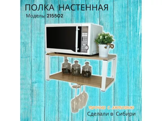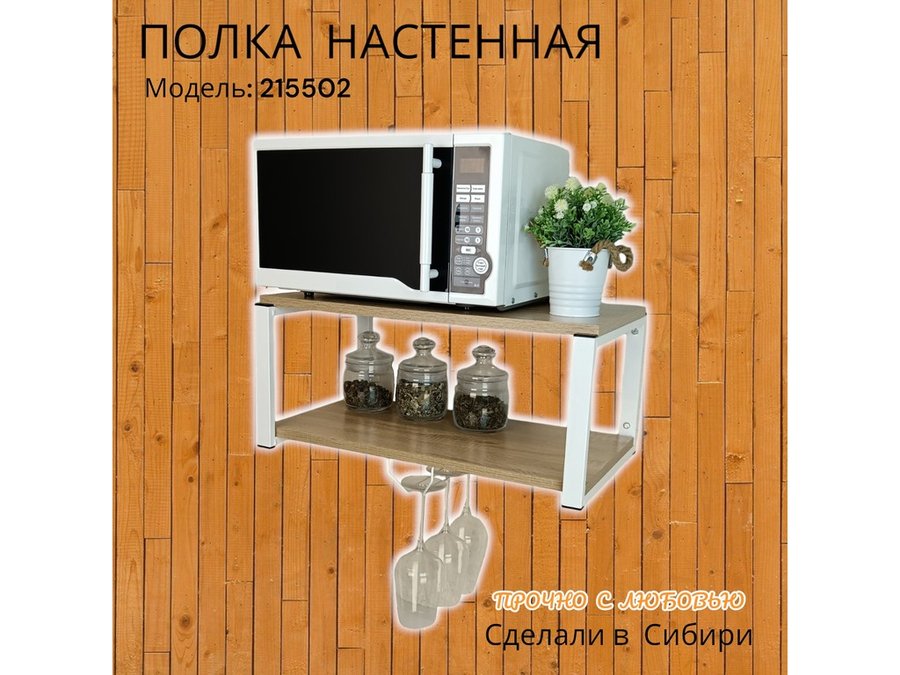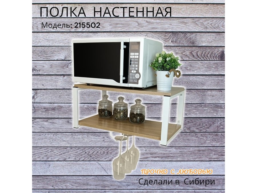 Полка c одним бокалодержателем для микроволновки "SVCH 215502" 60х30см, белая, дуб сонома