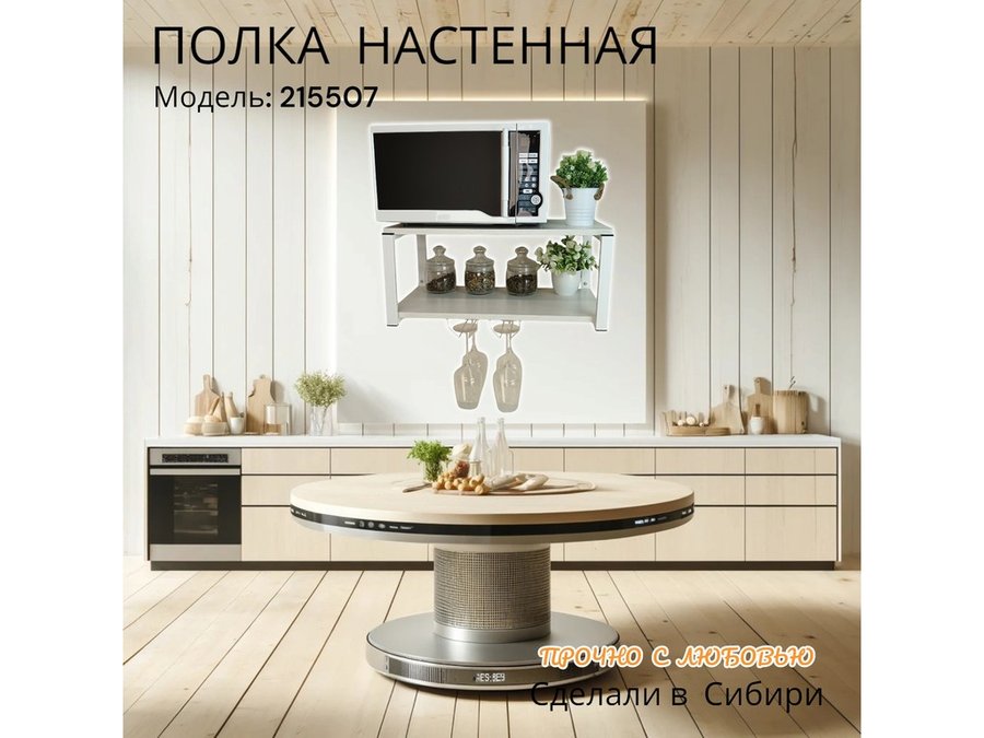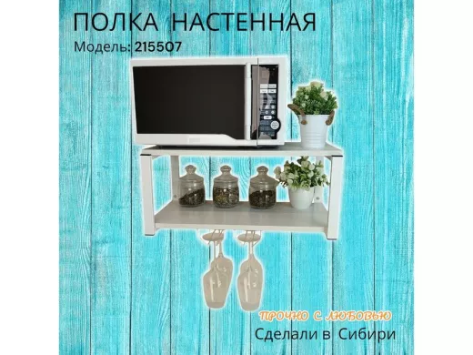 Полка c двумя бокалодержателем для микроволновки "SVCH 215507" 60х30см, белая, сосна выбеленная