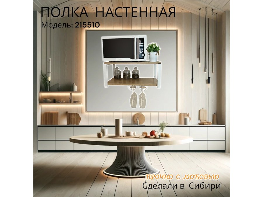 Полка c двумя бокалодержателем для микроволновки "SVCH 215510" 60х30см, белая, дуб сонома