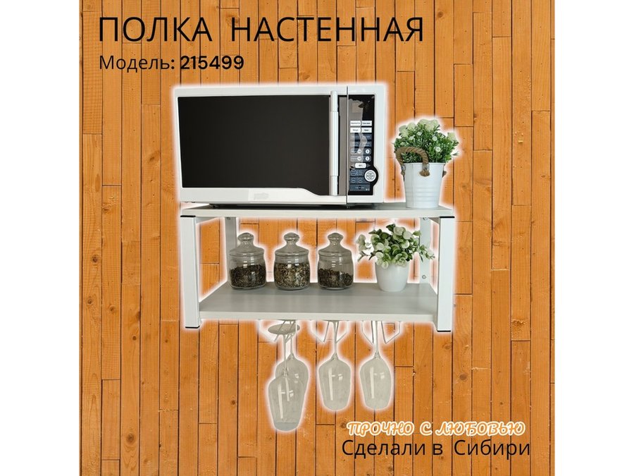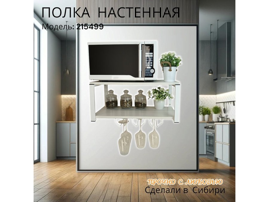 Полка c тремя бокалодержателями для микроволновки "SVCH 215499" 60х30см, белая, сосна выбеленная