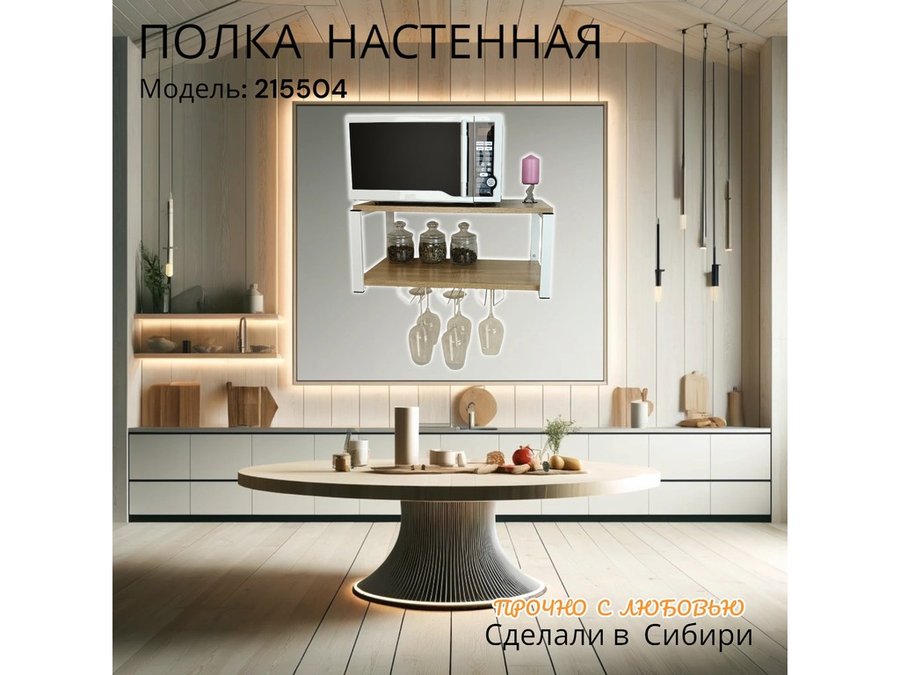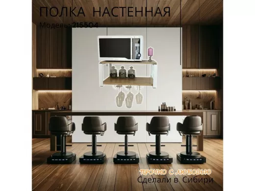 Полка c тремя бокалодержателями для микроволновки "SVCH 215504" 60х30см, белая, дуб сонома