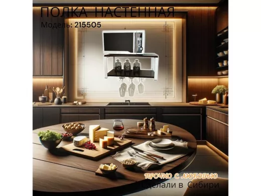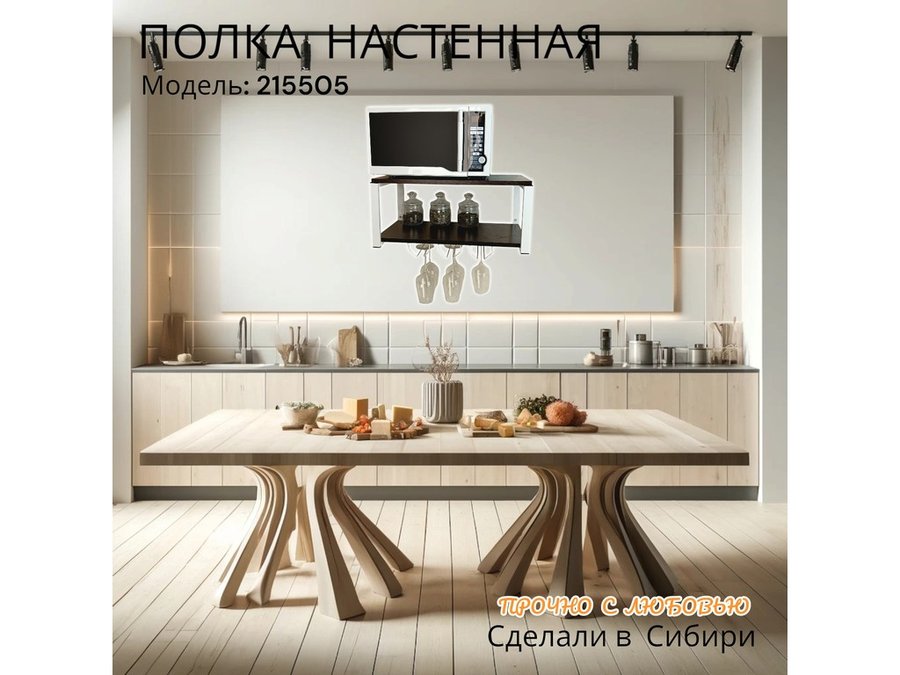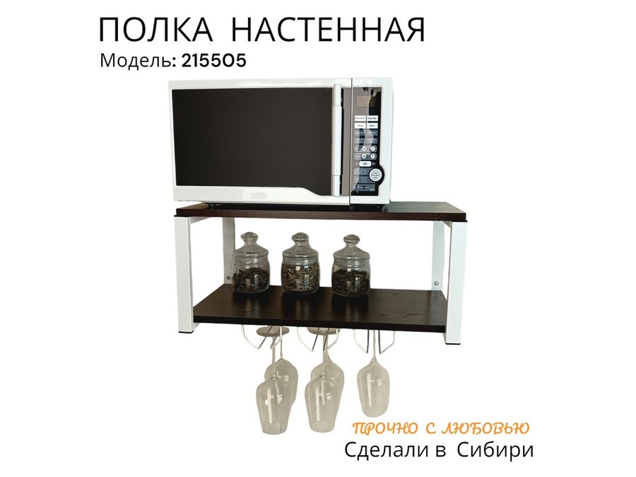 • Полка надежно крепится к стене при помощи анкеров или шурупов с дюбелями, на ней можно разместить микроволновую печь, кухонную технику, посуду, специи