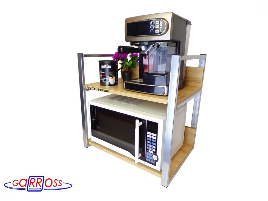 Кронштейн для микроволновки, высота, 54см серебр "SVCH 213306" две полки 35х60см со стенками, дуб