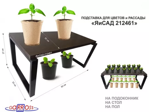 • Универсальная подставка для цветов и рассады имеет лаконичный и стильный дизайн, идеально подойдет для любого интерьера.