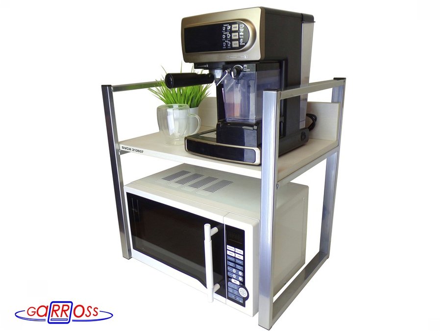 • Универсальная подставка для бытовой техники (микровоновой печи, кофемашины, тостера, электрического чайника и др) позволяет эффективно использовать место на столе.