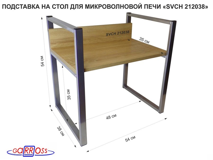 Подставка, полка на стол для микроволновой печи, высота 54см серебристый "SVCH 212038" 35х54, дуб