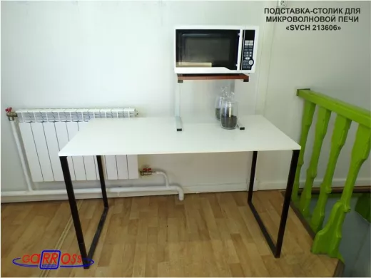 Универсальная подставка для микроволновой печи позволяет эффективно использовать место на столе.