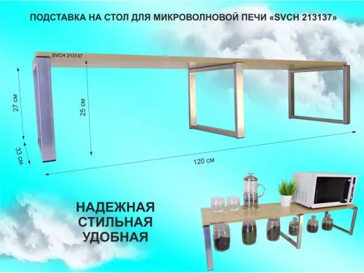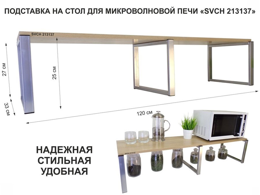 Подставка на стол для микроволновой печи, высота 27см, серебр "SVCH 213137" полка 120х30см, дуб соно
