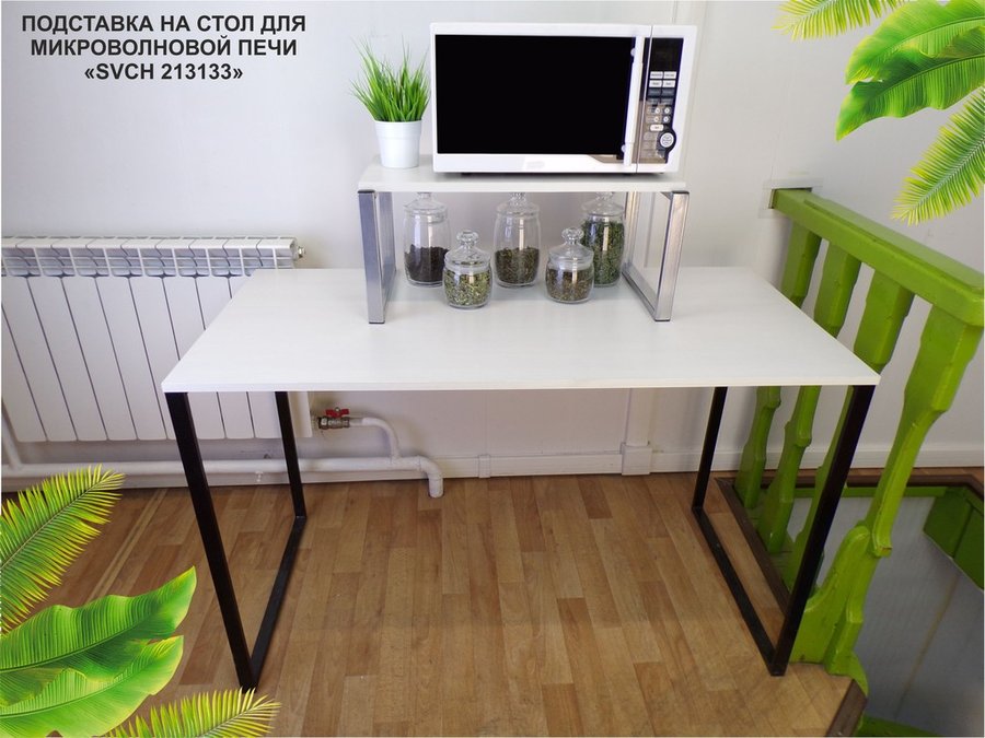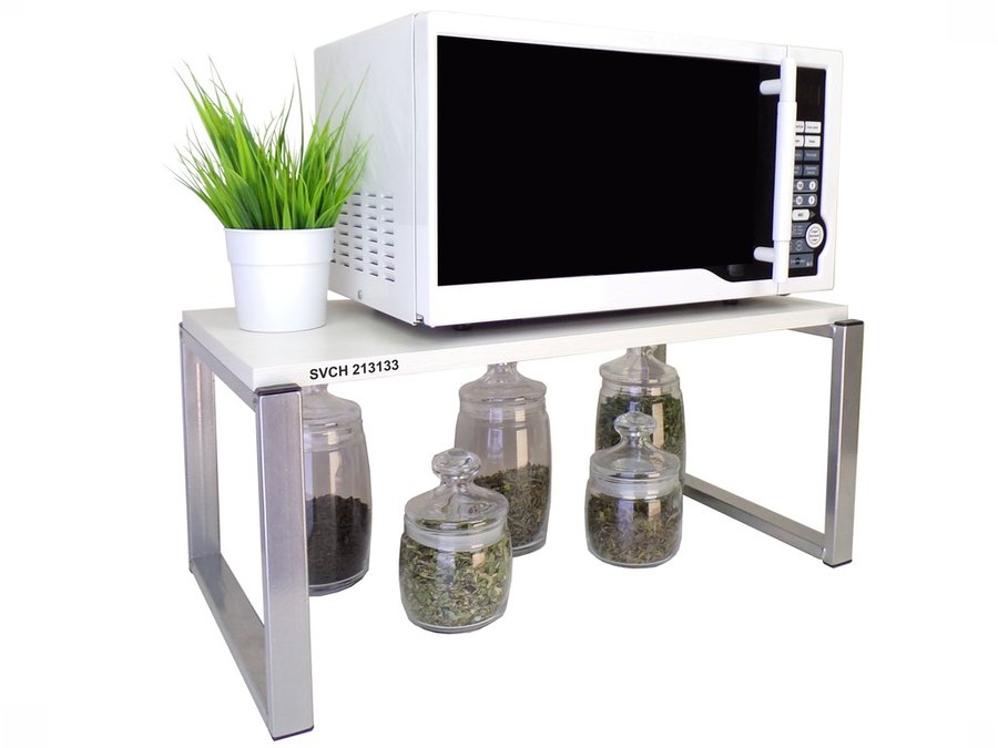 - Универсальная подставка для микровоновой печи позволяет эффективно использовать место на столе.