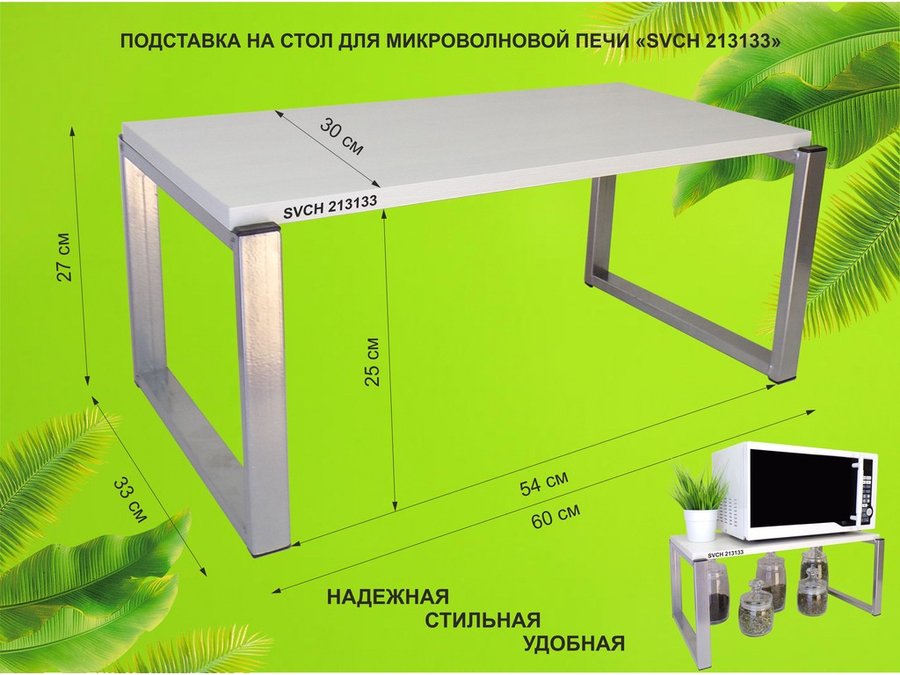Подставка на стол для микроволновой печи, высота 27см, серебр "SVCH 213133" полка 60х30см, сосна