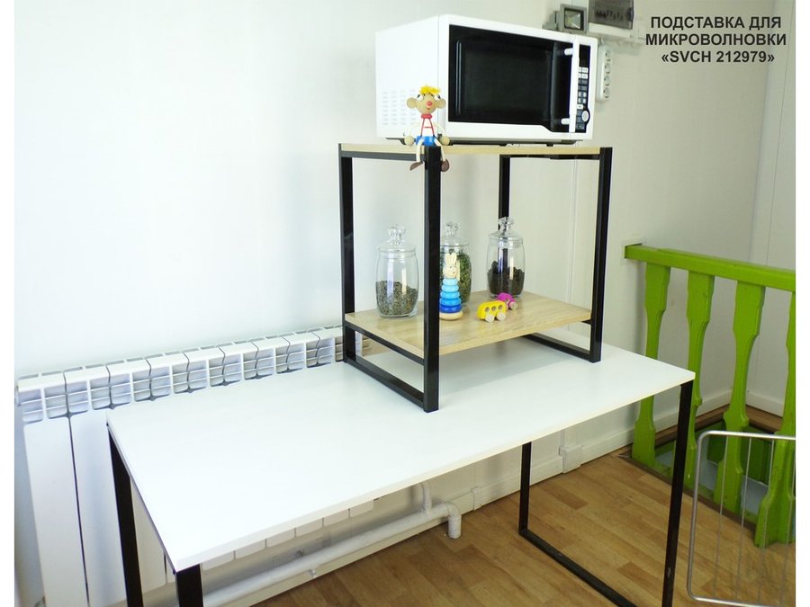 Подставка для микроволновки, черный, 55см "SVCH 212979" с двумя уровнями, дуб