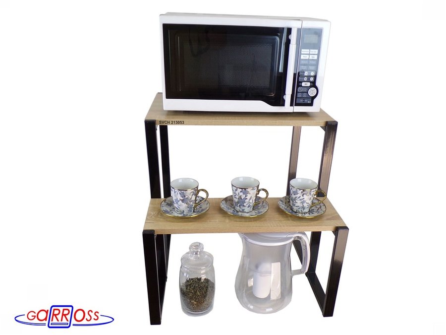• Универсальная подставка для бытовой техники (микровоновой печи, кофемашины, тостера, электрического чайника и др) позволяет эффективно использовать место на столе.