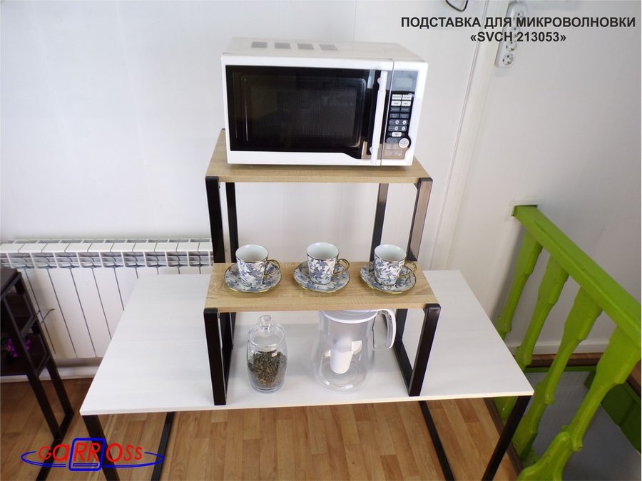 В корзину Купить в 1 клик Подставка для микроволновки, черный, 55см "SVCH 213053" с двумя уровнями 55 и 31 см, дуб сонома