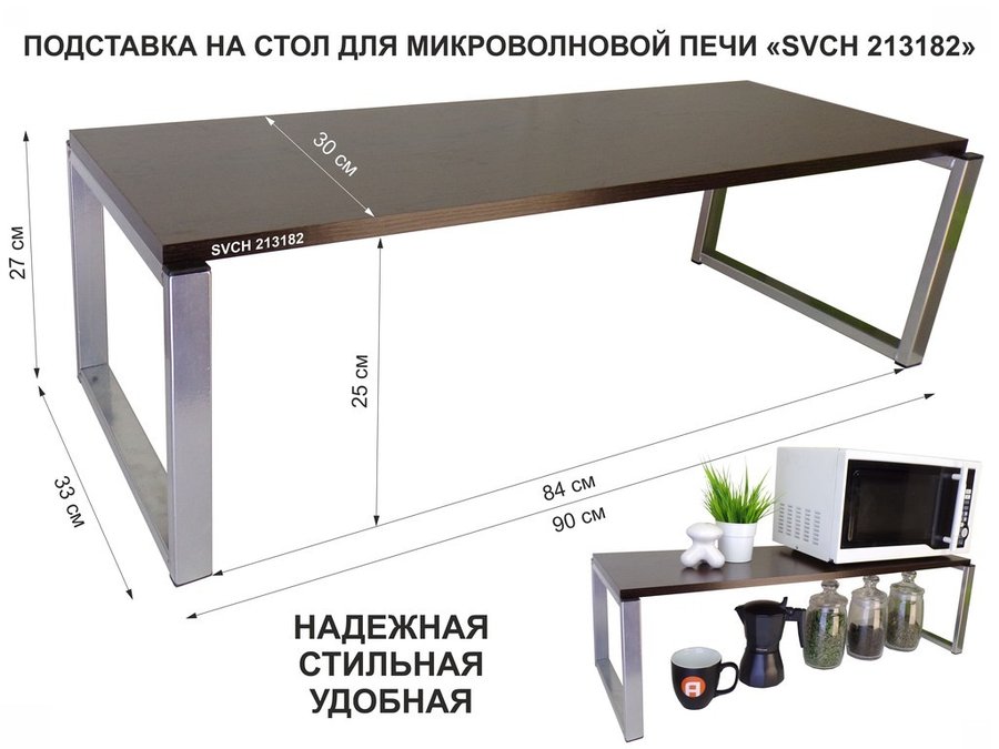Подставка на стол для микроволновой печи, высота 27см, сереб "SVCH 213182" полка 90х30см, венге