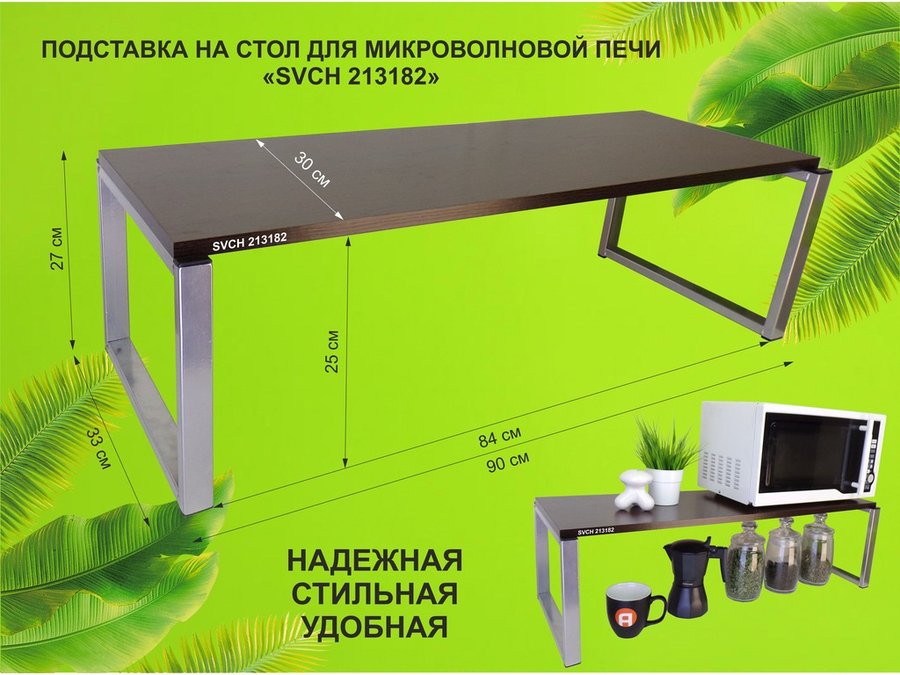 В корзину Купить в 1 клик Подставка на стол для микроволновой печи, высота 27см, сереб "SVCH 213182" полка 90х30см, венге