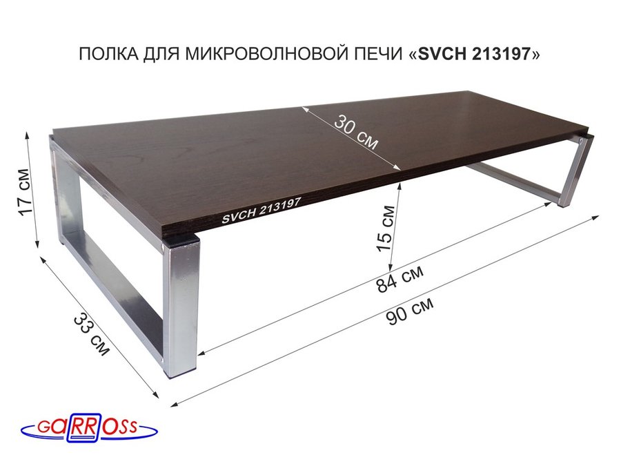 В корзину Купить в 1 клик Подставка на стол для микроволновой печи, высота 17см, серебристый "SVCH 213197" полка 90х30см,венге
