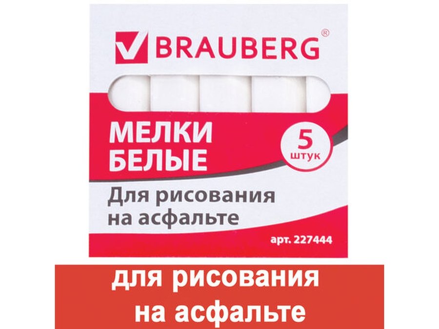 В корзину Купить в 1 клик Мел белый "BR-74206", НАБОР 5 шт., для рисования на асфальте, квадратный