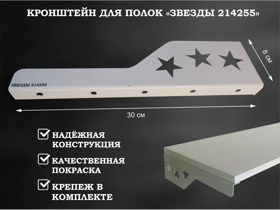 В корзину Купить в 1 клик Кронштейн "ЗВЁЗДЫ 214255" для полок, правый 30x8 см , 7 отверстий 7 мм, серый