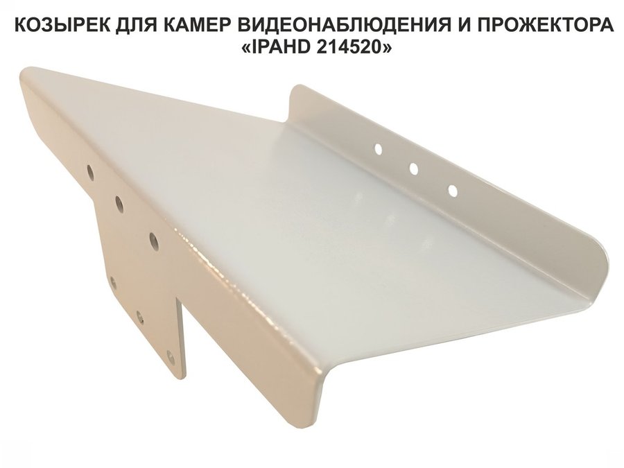 Кронштейн-козырек крепится на стену и кронштейны на столб серии IPAHD для видеокамер, оснащенные тремя отверстиями для креления опций. На козырьке спереди есть три отверстия для крепления прожектора