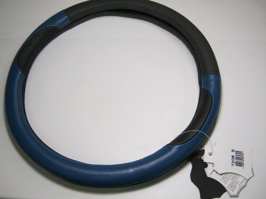 В корзину Купить в 1 клик Оплетка на руль 36 см. S 7208 кожа черная+синяя кожа "спорт" "гладкая"