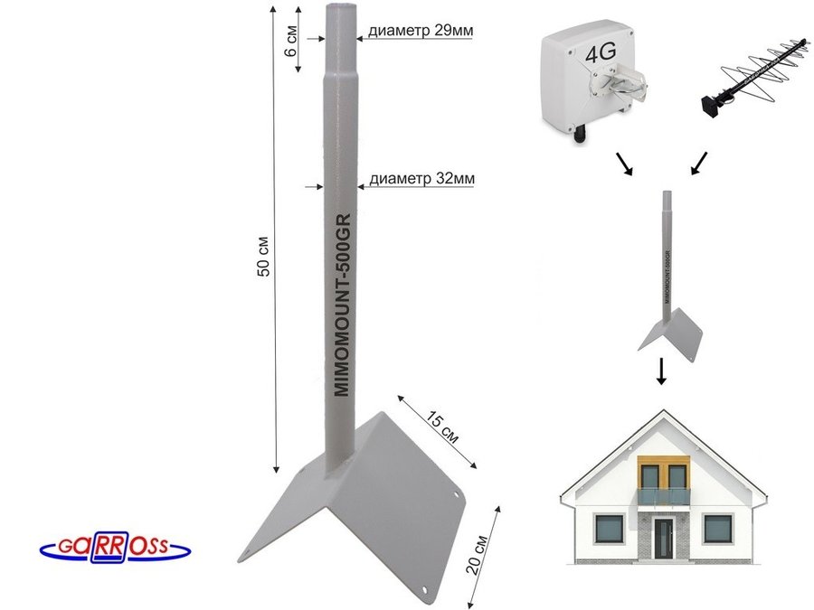В корзину Купить в 1 клик Кронштейн на конек для антенн, диаметр 32мм "MIMOMOUNT-500GR-105610" серый, обжатый, высота 50 см