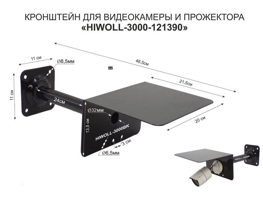 В корзину Купить в 1 клик Кронштейн с боксом и козырьком для видеокамеры "HIWOLL-10PRO-217009" черный, вылет 10см, сталь