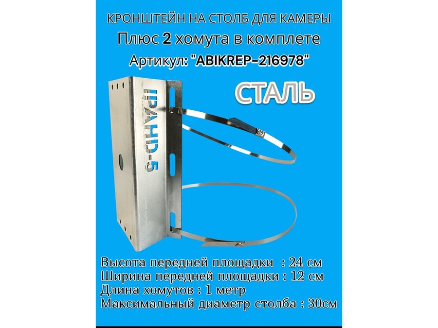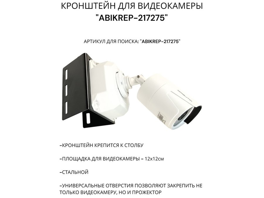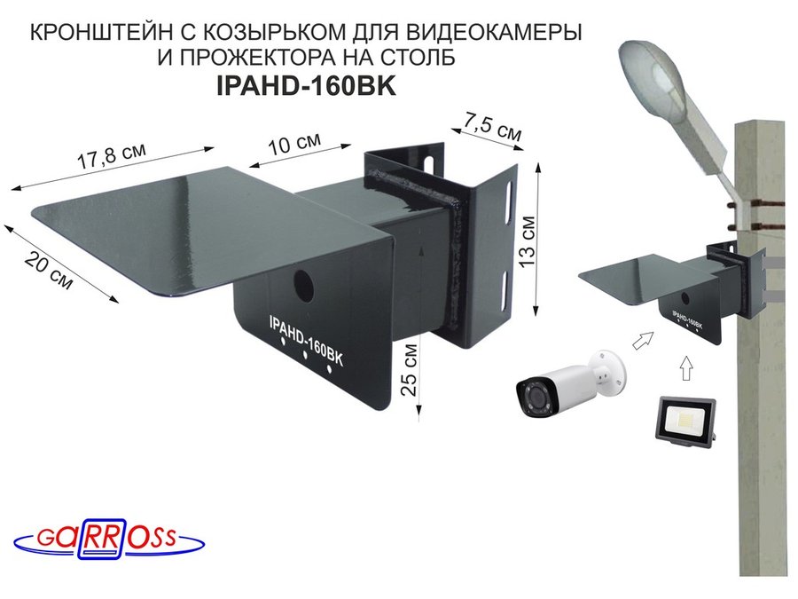 В корзину Купить в 1 клик Кронштейн с козырьком для крепления поворотной видеокамеры на столб "ABIKREP-PRO-216961" черный