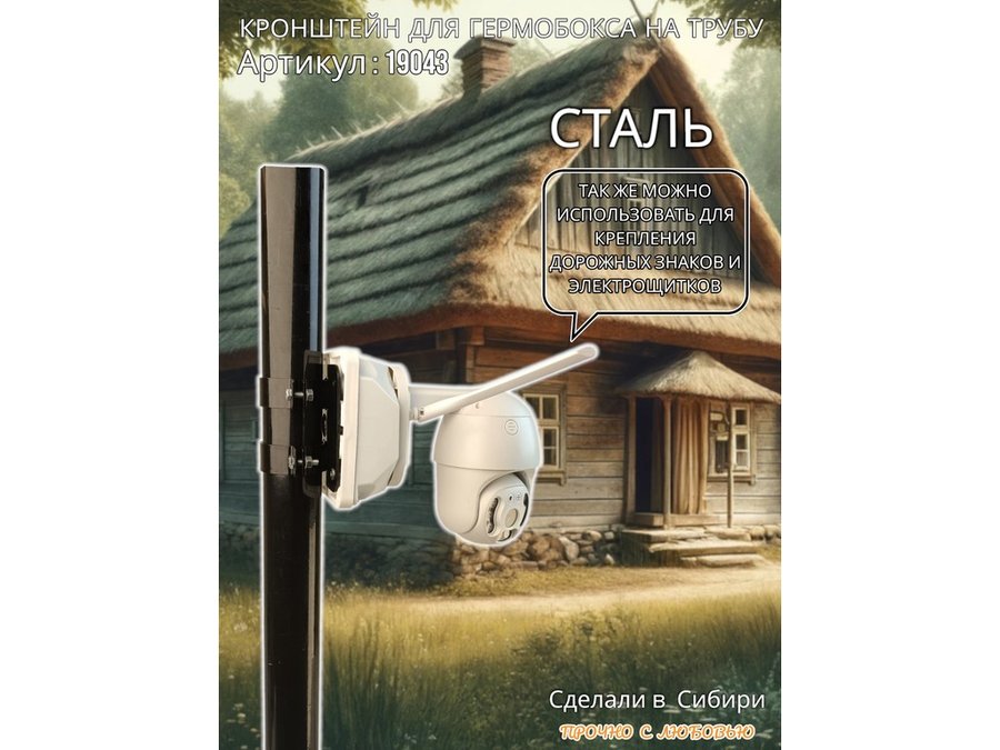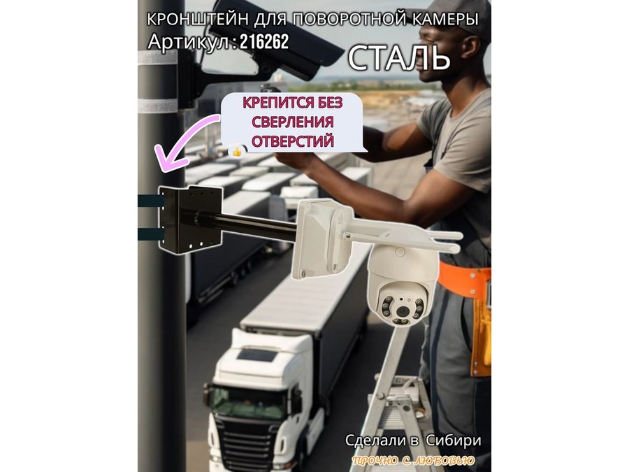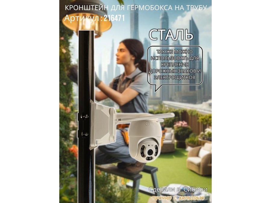В корзину Купить в 1 клик Кронштейн на столб для крепления гермобокса с видеокамерой, вылет 25 см "HIWOLL-216262" черный,сталь