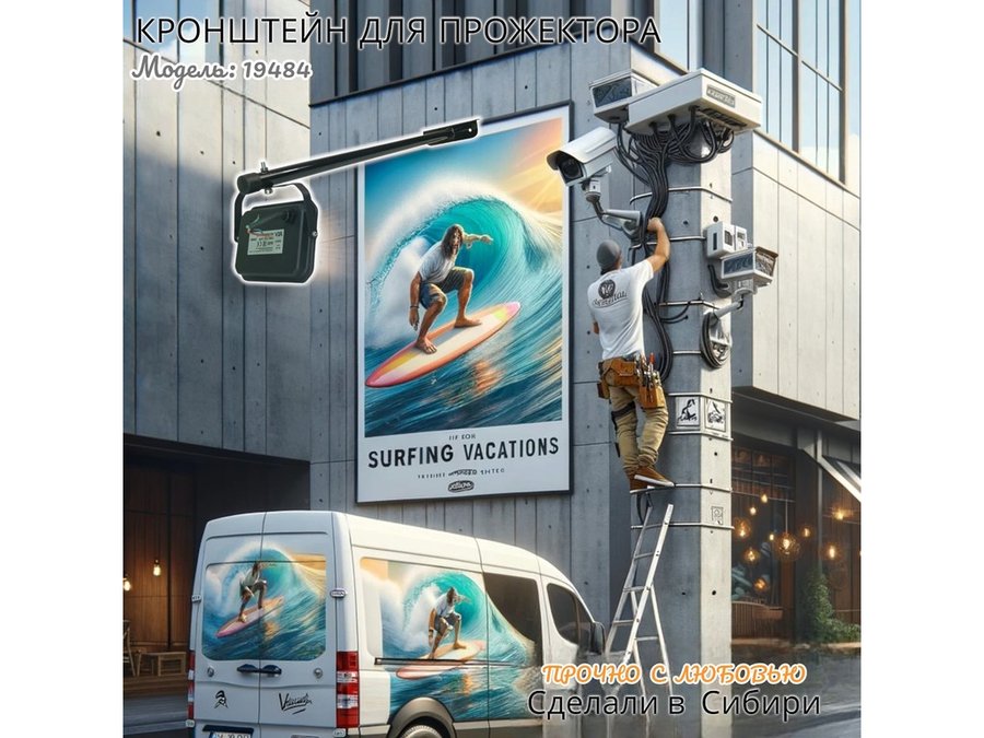 В корзину Купить в 1 клик Кронштейн для прожектора "ПОДСВЕТКА- 600-19484" черный с уголком на рекламные щиты, вылет 0,6м