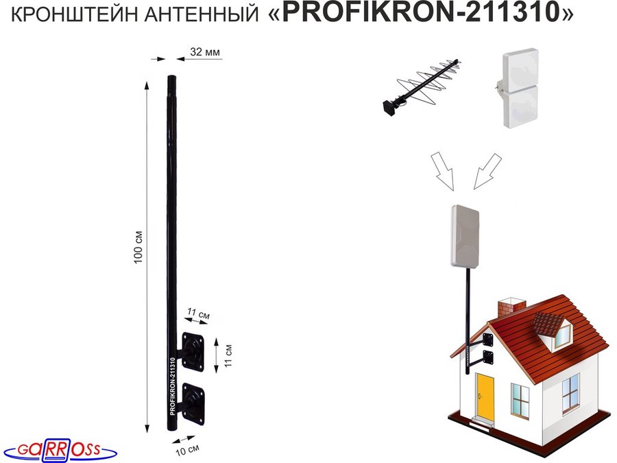 В корзину Купить в 1 клик Кронштейн антенный, вылет 0,16м, вверх 0,23м, обжата 6см "PROFIKRON-217256" черный, диаметр 32мм
