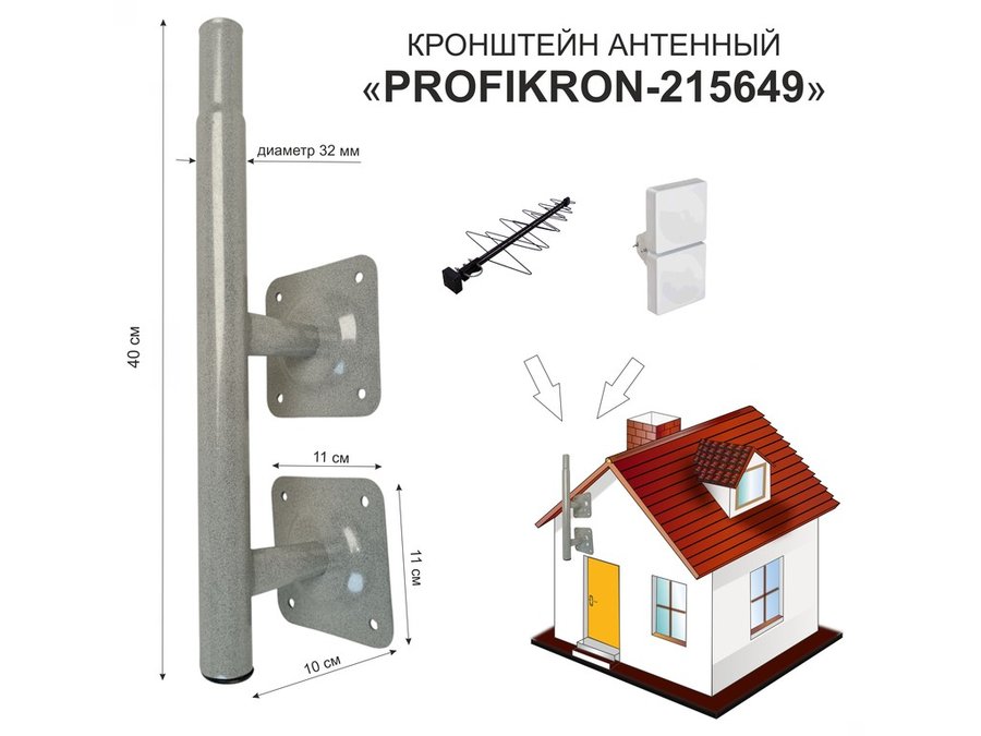 В корзину Купить в 1 клик Кронштейн антенный, вылет 0,16м, вверх 0,23м, обжата 6см "PROFIKRON-217255" серый, диаметр 32мм