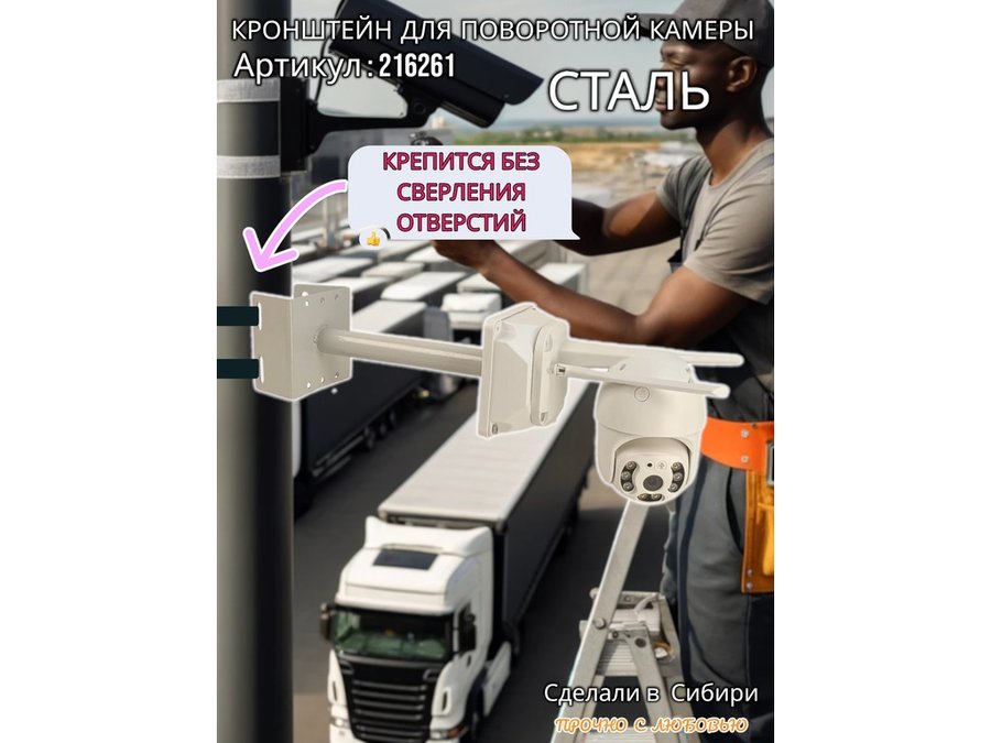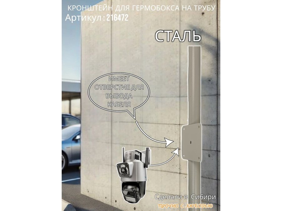 В корзину Купить в 1 клик Кронштейн на столб для крепления гермобокса с видеокамерой, вылет 50 см "HIWOLL-216405" черный,сталь